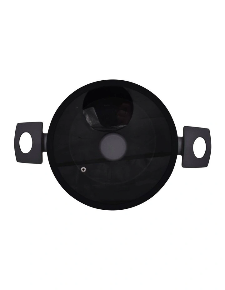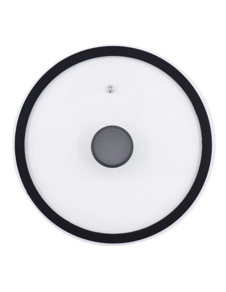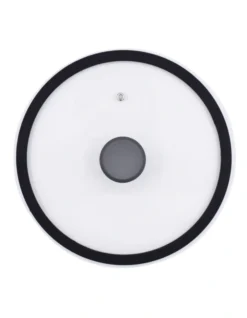 - Heat tempered glass lid with silicone rim and steam vent
