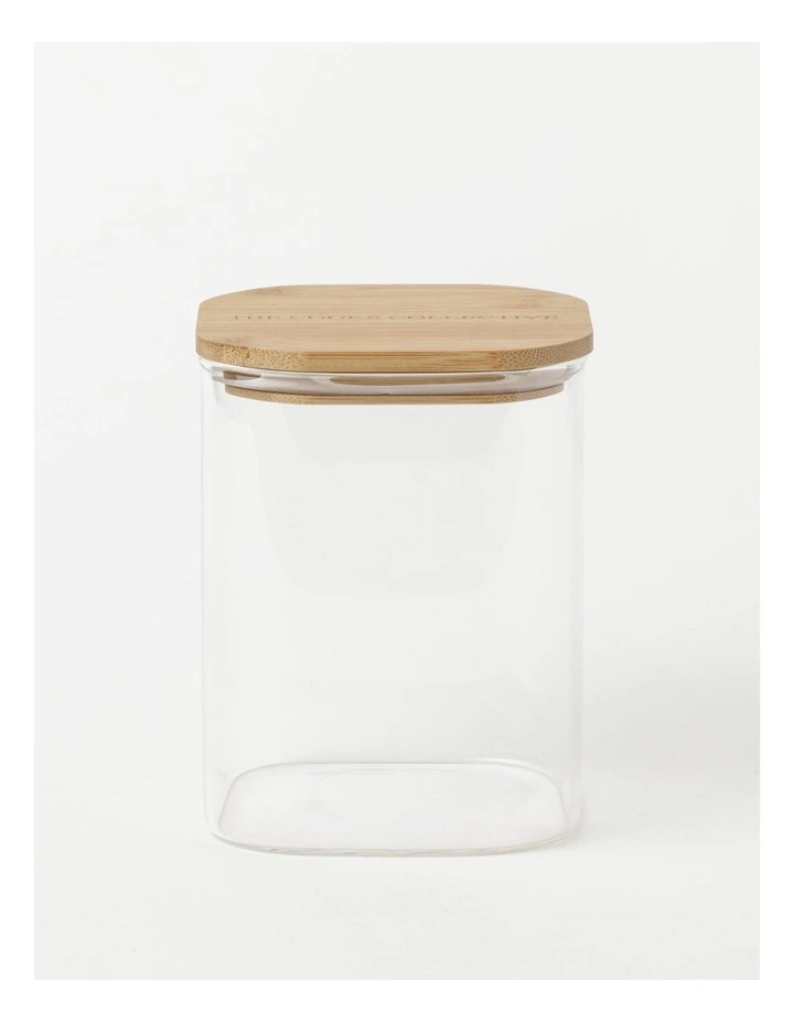 The Cooks Collective Square Bamboo and Glass Storage Canister with Lid 1300mL
